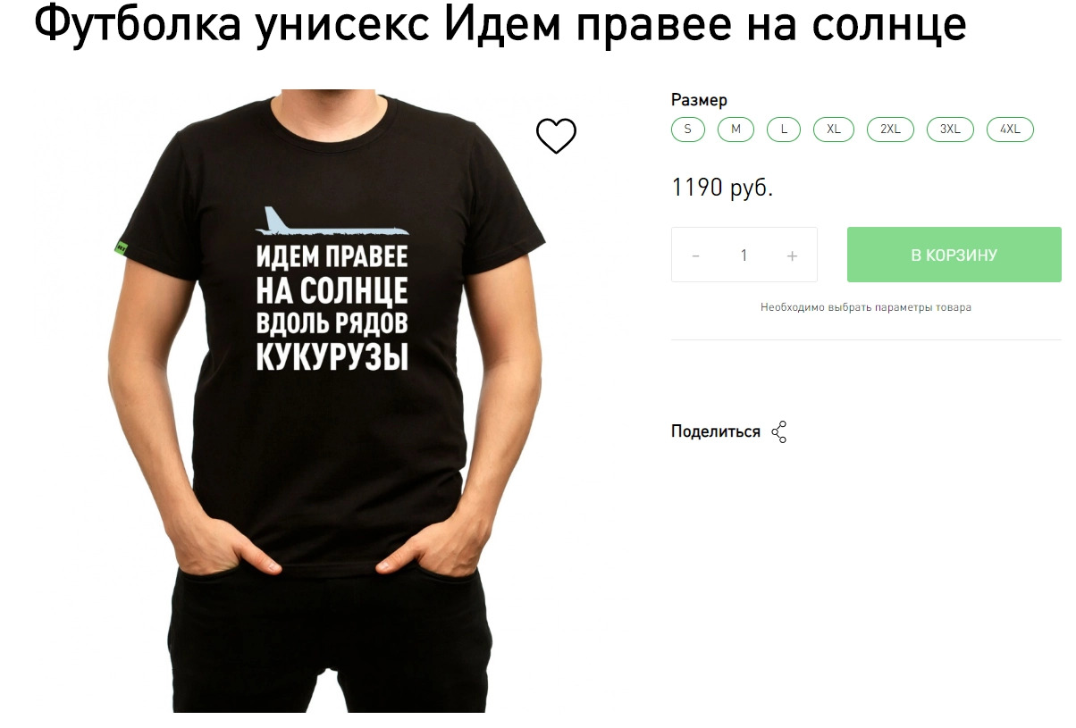Более серьезные организации выпускают товары по мотивам сенсационной аварии без обмана и без мистики. Как сообщает ФАН, сегодня телеканал RT открыл продажу футболок, вдохновленных спасением самолета, в своем магазине сувениров. На футболках отпечатана цитата бортпроводника Дмитрия Ивлицкого, с которой он выводил пассажиров из лайнера — «Идем правее на солнце вдоль рядов кукурузы». Стоят они около 1200 рублей за штуку.