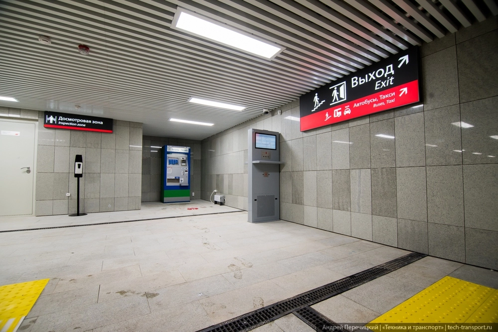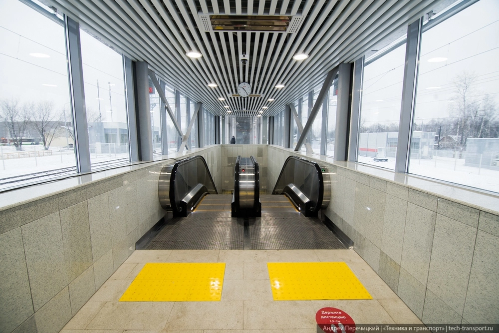 Станция смотрится стильно, пусть и не выделяется на фоне последних крупных проектов типа Славянского бульвара или Долгопрудной. Но и находится она отнюдь не в густонаселённом микрорайоне — из ближайшего жилья здесь только частный сектор. Так как же выглядит абсолютно новая станция, расположенная практически в деревне?