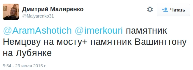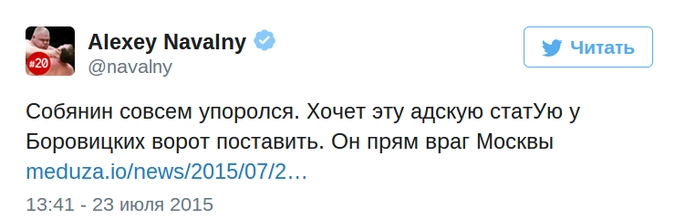 «Навальный — идиот, — пишет Габрелянов в Твиттере. — Его не устраивает памятник крестителю Руси князю Владимиру у Боровицких ворот. Его устроит там памятник Джорджу Вашингтону».