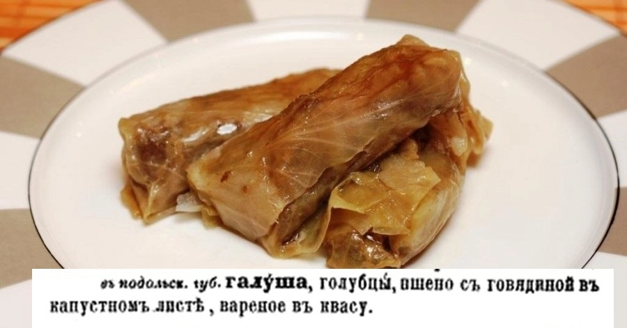 Словарь русского языка Российской академии наук за 1892 год тоже приводит это забытое слово: «Голубцы — галуши: капуста, начиненная пшеном. Постное кушанье. Иногда куски мяса, обернутые капустными листами».