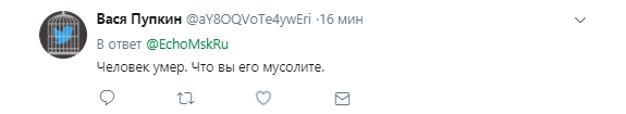 «Его концерты были событием, собиравшим у экранов всю страну, и еще лет восемь назад, на сотом повторе, давали нефиговые рейтинги каналу Рен-ТВ. Он не был пошлым. Он был остроумным. У него была крутейшая подача. Он написал огромное количество качественного материала. Он очень сильно отличался от своих коллег-юмористов, чьих имен не буду произносить всуе», — ответил автор песен в Facebook.