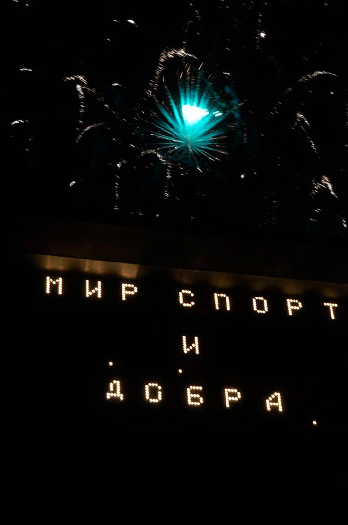 По случаю фестиваля Лолита, по собственному признанию, впервые надела спортивный костюм! Как выяснилось, не просто так: она пробежала два полных круга по стадиону, продолжая петь. Олег Газманов тоже пробежался и порадовал публику заездом на электроскейте под песню «Танцуй пока молодой!». Завершился фестиваль «Мир спорта и добра» грандиозным салютом