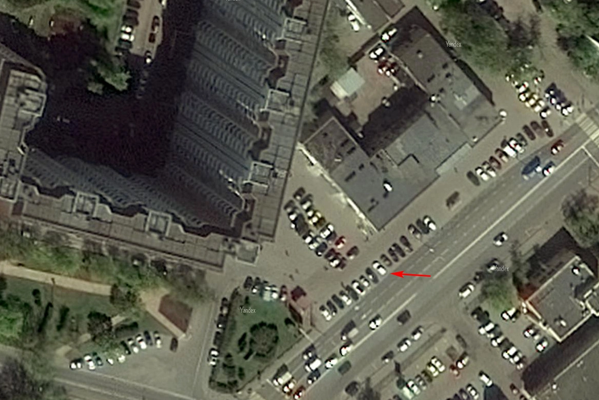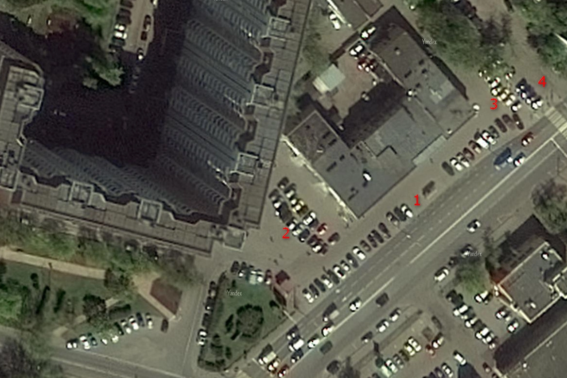 Машины в зоне «1» (а их на спутниковом снимке 27 штук), как выяснилось, стоят на тротуаре и получают по штрафу 3000 рублей (81 000 рублей на одном пятачке — неплохой улов).