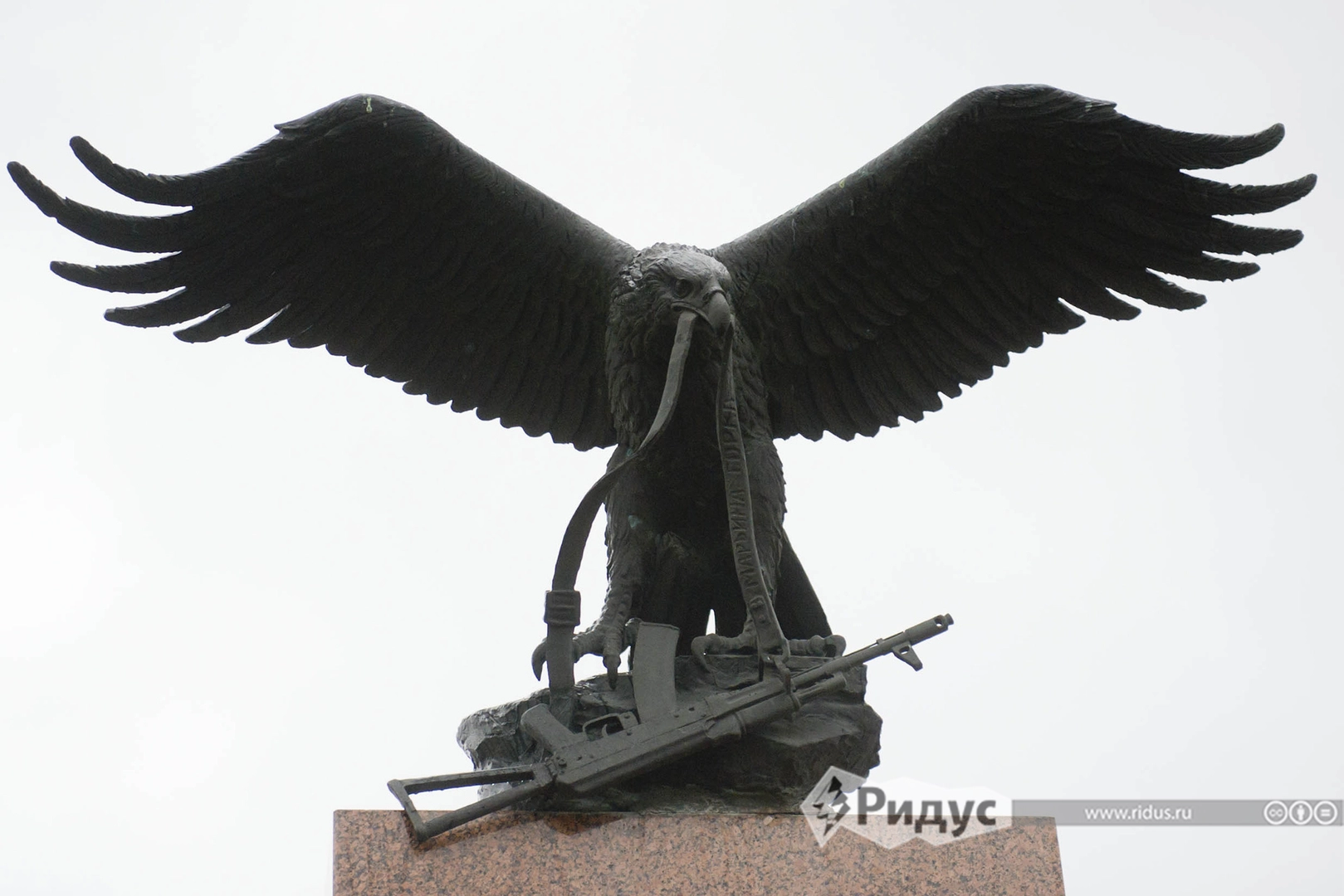 В подмосковных Химках находится единственный в европейской части России памятник бойцам спецназа — мемориальный комплекс «Доблесть и память специальных подразделений России». Каменную стелу венчает расправивший крылья и приготовившийся к атаке орел. В острых когтях птица несет автомат Калашникова.