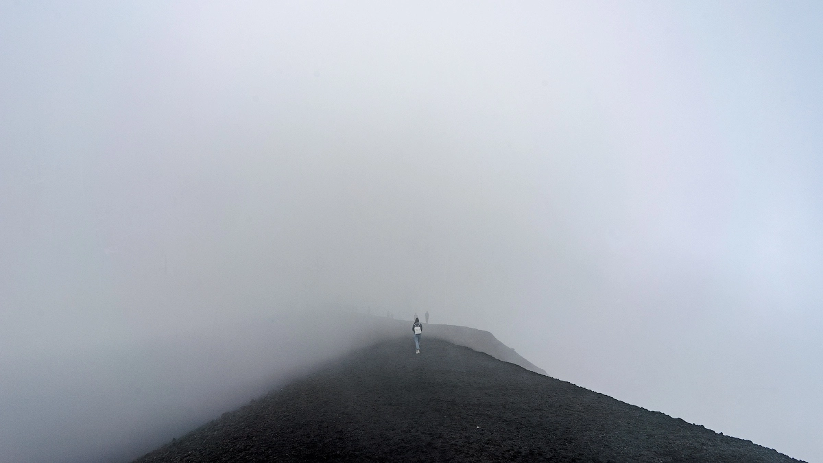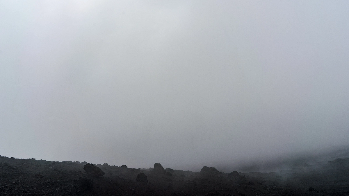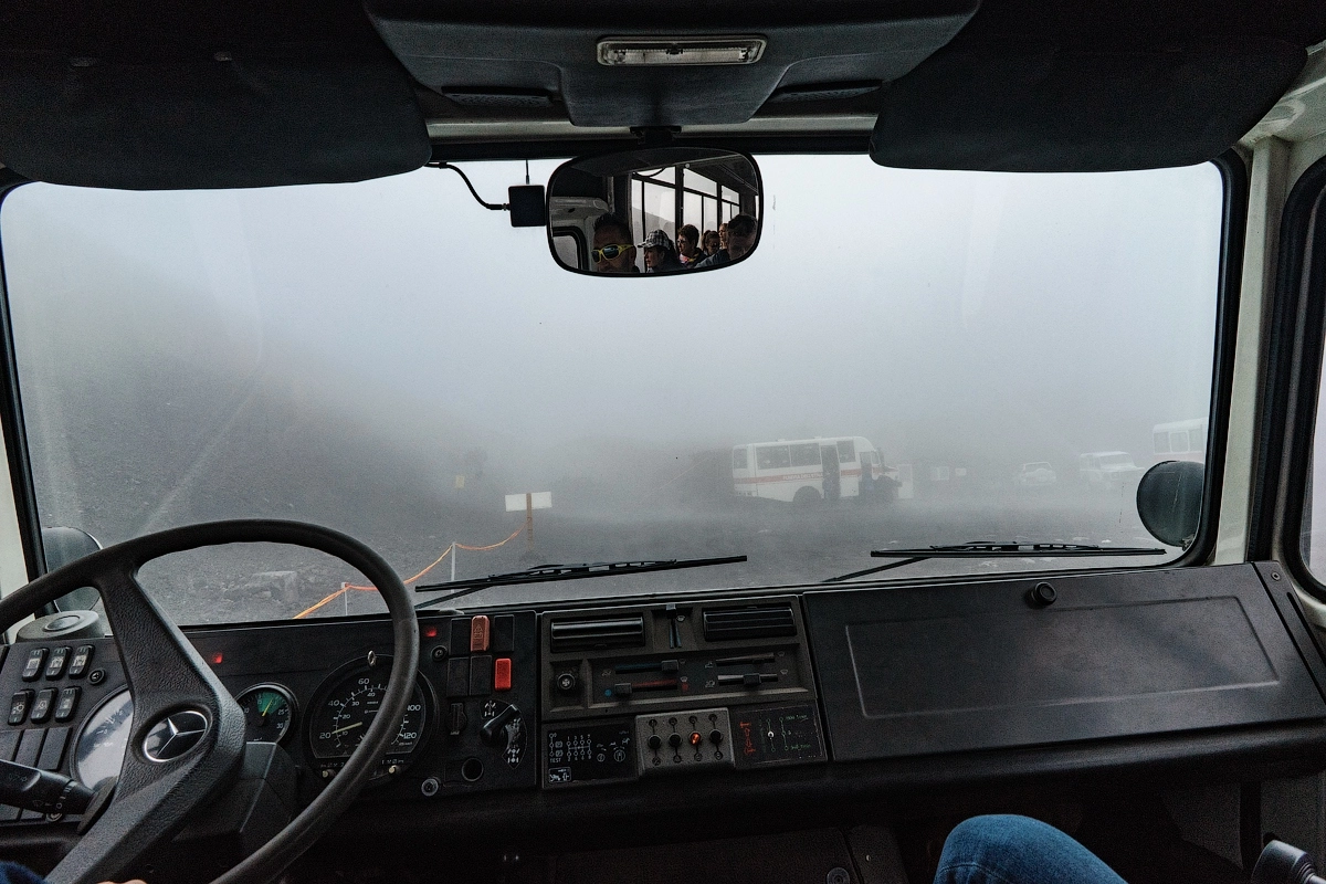 Час-полтора на взятие 500 метров по вертикали, и вуаля. Цели залезть на вершину у меня не было да и сидеть внутри облака то еще удовольствие, потому ограничились изучением одного из сотни малых кратеров и окрестностей.