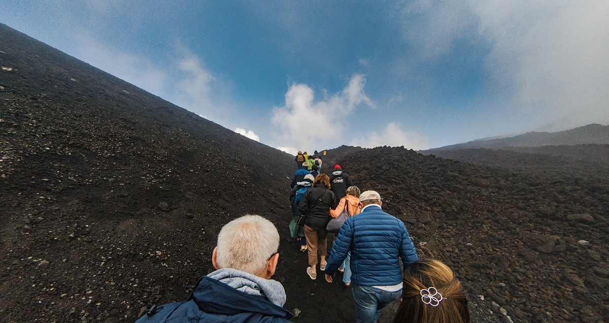 Где-то справа притаилась Этна, а цветастая группа, судя по всему отправилась ее покорять. Если я правильно отрыл инфу в Сети, можно совершенно спокойно свалить от группы и отправиться на покорение самостоятельно.