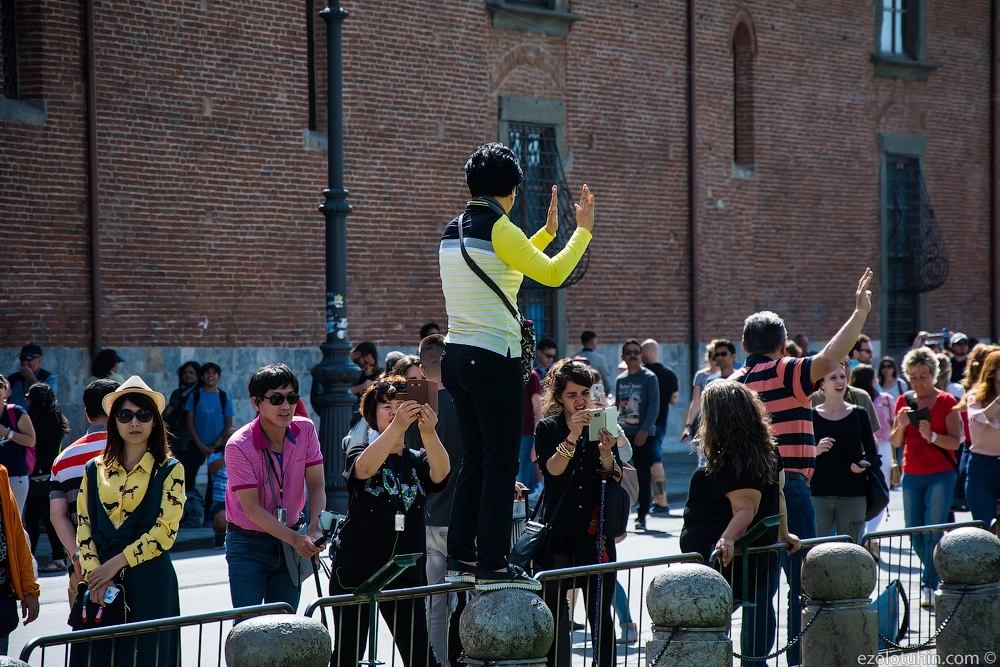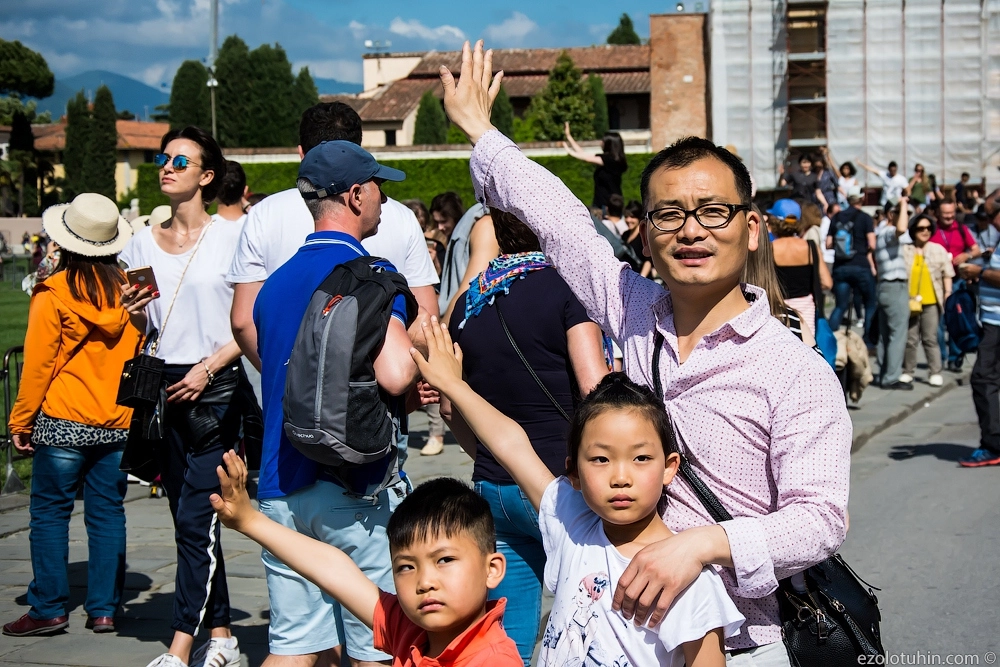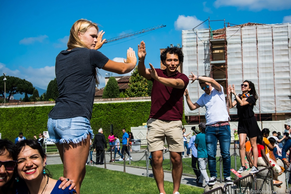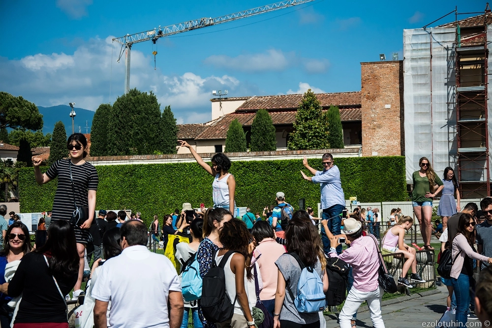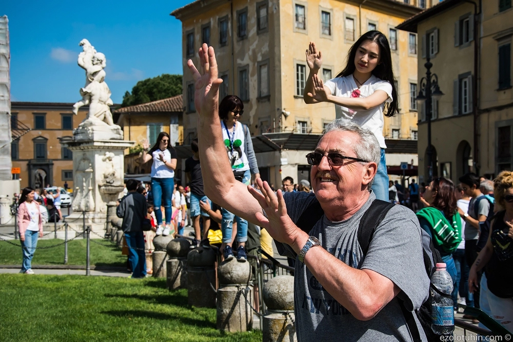 Самая большая концентрация на один метр таких людей находится, конечно, в итальянской Пизе. Тысячи туристов ежедневно друг за другом пытаются в кадре поддержать ту самую башню. Со стороны это выглядит странно.