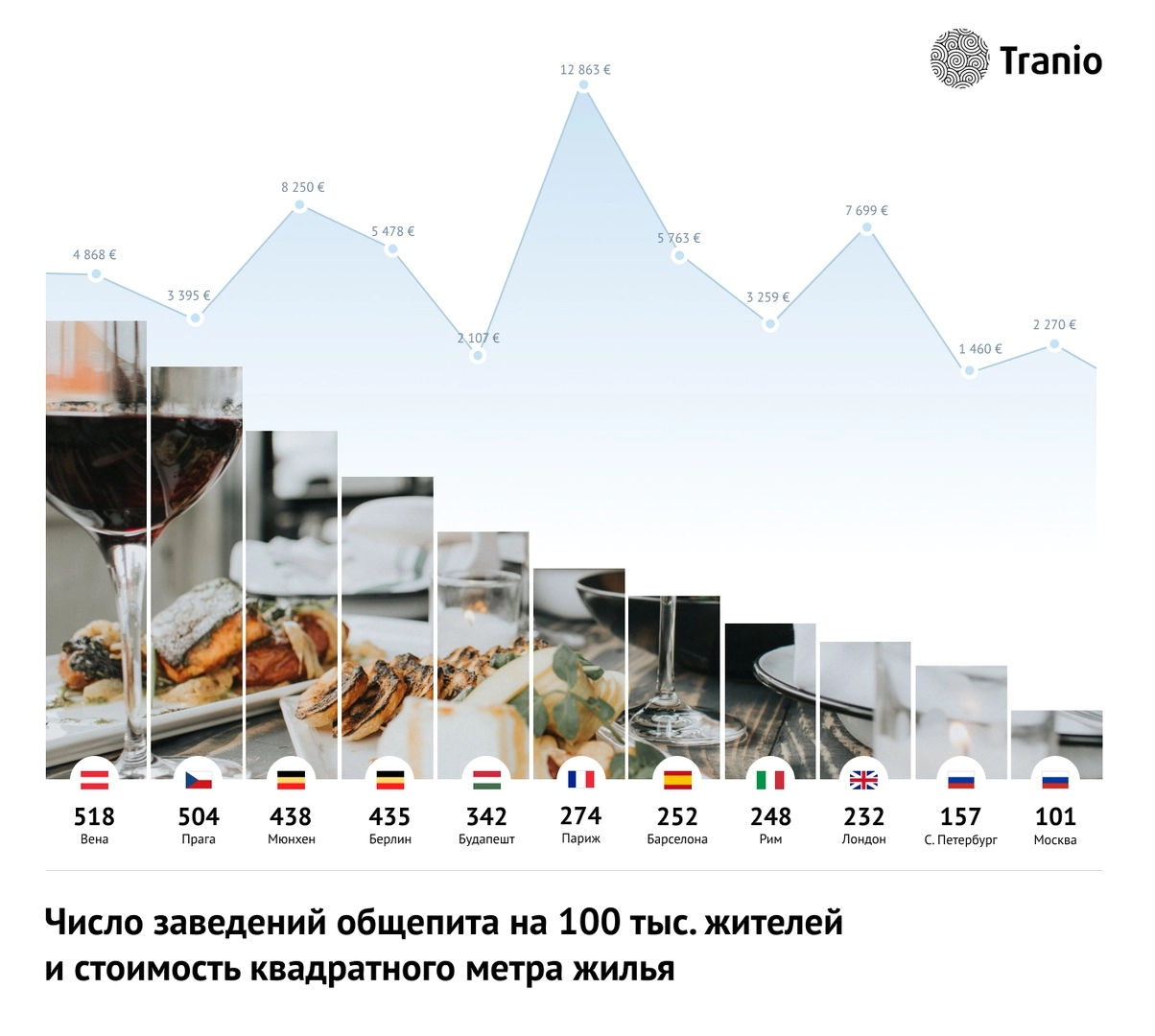 В топ-5 европейских городов по насыщенности ресторанами и барами вошли Вена, Прага, Мюнхен, Берлин, Будапешт.