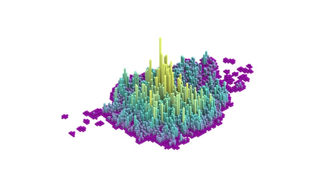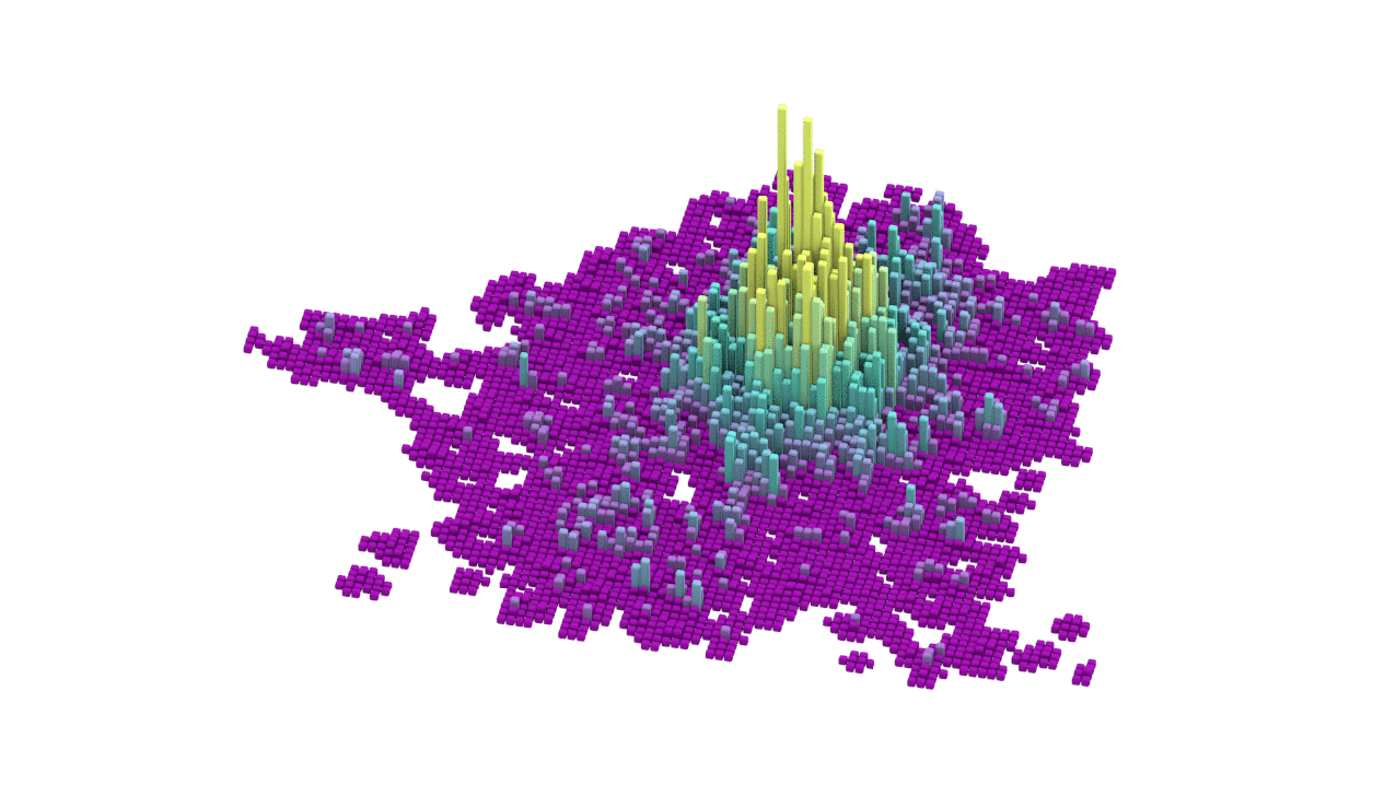 Модель распределения заведений в Берлине, построенная по данным OSM. Берлин по размерам и числу заведений сопоставим с Большим Парижем, но обгоняет его по насыщенности заведениями общепита.