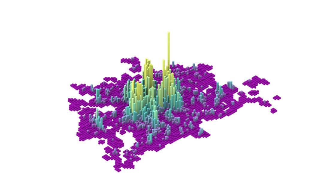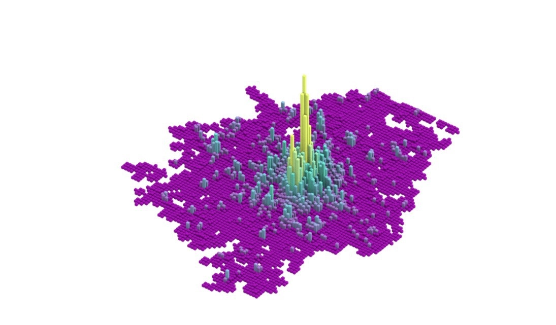 Модель распределения заведений в Лондоне, построенная по данным OSM. Площадь Лондона больше площади Большого Парижа в 2 раза.