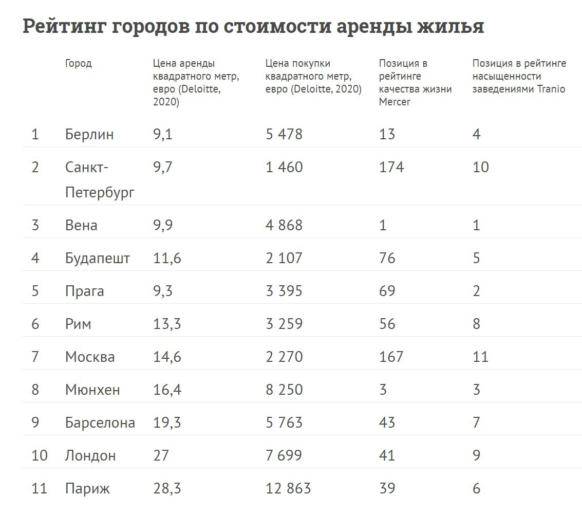Берлин, Санкт-Петербург и Вена — самые доступные города по стоимости жилья