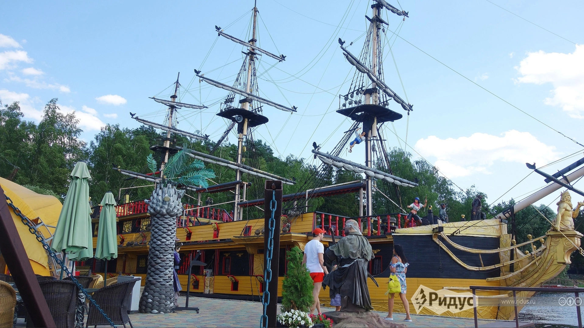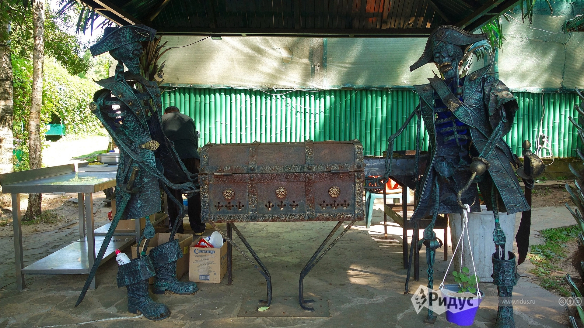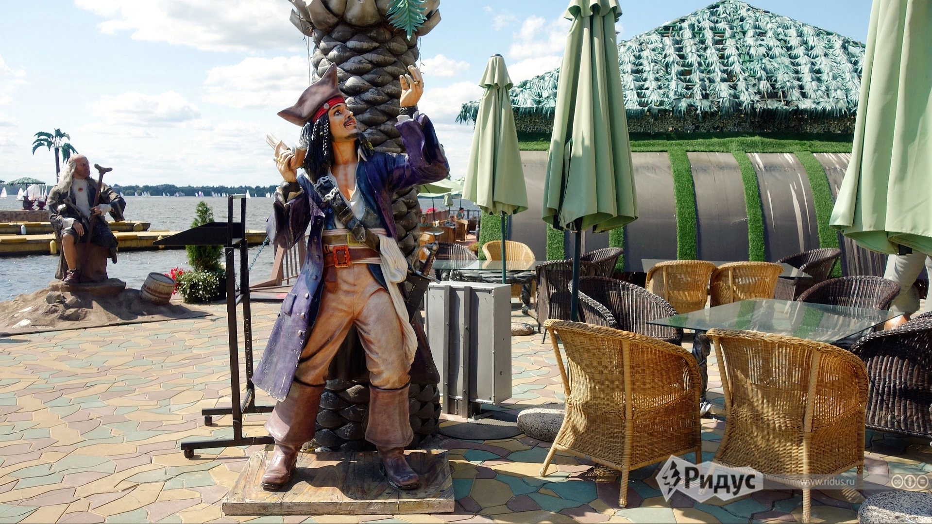 Помимо пляжа, Бухта предлагает ресторан и статуи пиратов, с которыми можно пофотографироваться. Как вам этот Джек Воробей?