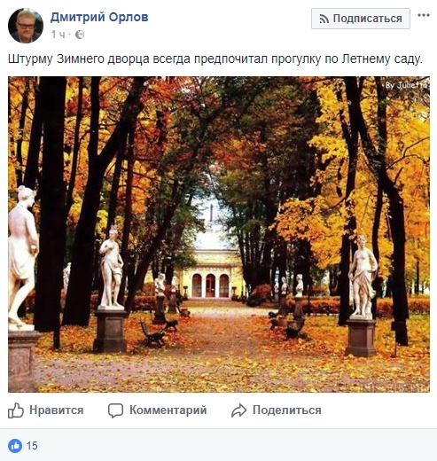 Безобиднее всех на фоне Октябрьской революции смотрится политолог Дмитрий Орлов.