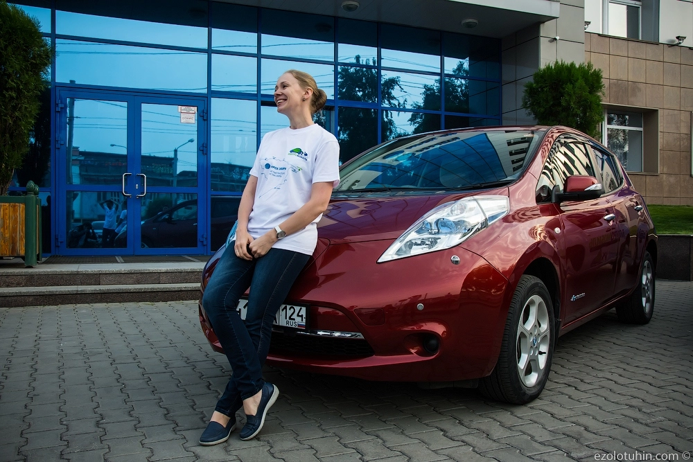 Девушка купила себе праворульный электрический «Ниссан» за 600 тысяч рублей и больше не только не думает о ценах на бензин, но еще и делает свой родной город чище. Она заряжает автомобиль или на станции МРСК Сибири, или прямо у себя дома, закинув удлинитель в окно.