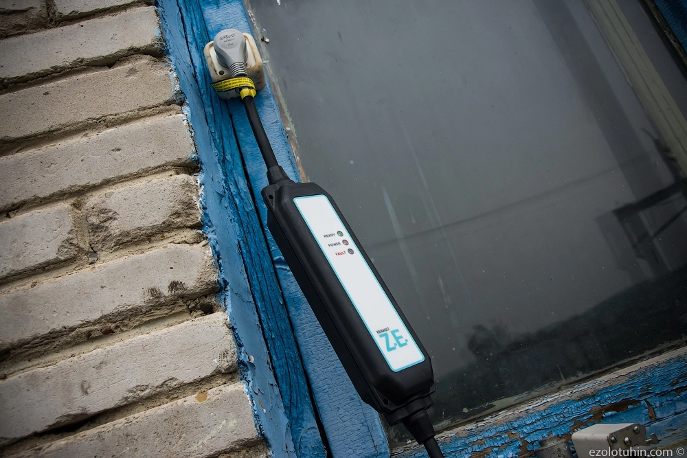 Начнем с исходных данных. Имеем пятиместный грузопассажирский электромобиль Renault Kangoo, запас хода от полностью заряженной батареи составляет около 200 километров. Заряжать автомобиль можно от специальных зарядных станций (с этим беда) и от обычной домашней розетки через специальный провод-переходник. Автомобиль абсолютно бесшумен и не загрязняет экологию, вредных выбросов ровно ноль, им просто неоткуда взяться.