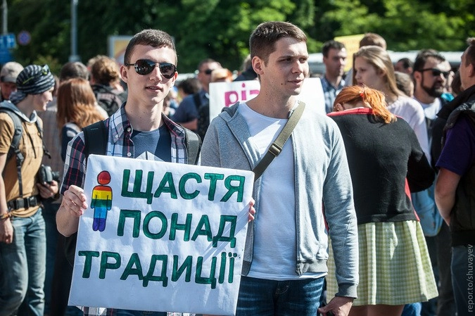 Правильно! Молодцы Украинцы! Я за прайды и права человека! пусть озлобленные русские гомофобы и дальше на диктатора молятся)