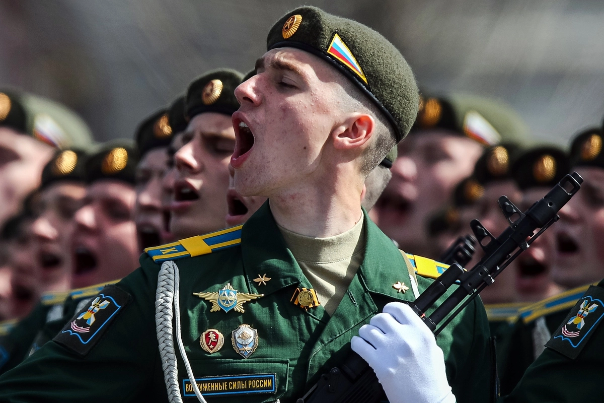 Военнослужащие парадных расчетов во время генеральной репетиции парада, посвященного 76-й годовщине Победы в ВОВ.