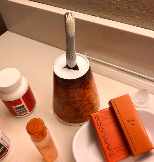 «Используйте стаканчик из-под кофе в качестве подставки для зубной щетки»