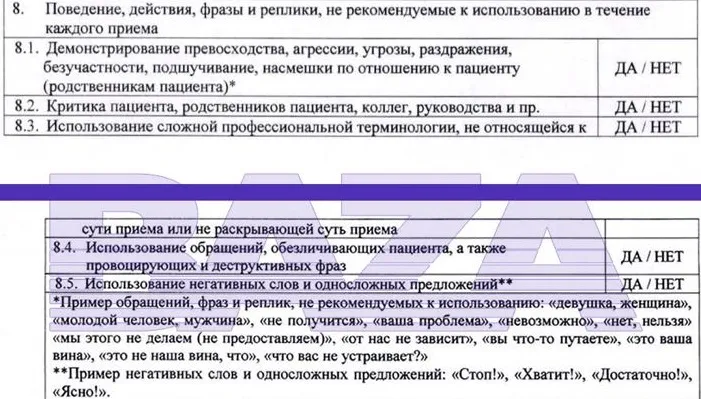 Ранее в Сети были опубликованы выдержки из приказа Департамента здравоохранения Москвы от 20 декабря, который устанавливает в алгоритме приёма все допустимые реплики в диалоге с пациентом. Врачам столичных поликлиник строго запретили подшучивать над пациентом, бранить коллег и использовать слишком сложные медицинские термины. Кроме того, под «ножницы цензуры» попали фразы «короче», «здрасьте», «ясно», «ваша проблема», «молодой человек», «что у вас?», «идите уже» и «не болейте».