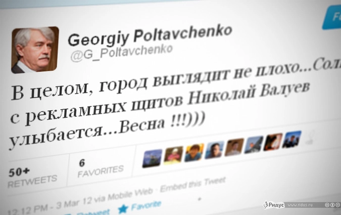 Георгий Полтавченко в Twitter выразил недовольство работой дворников