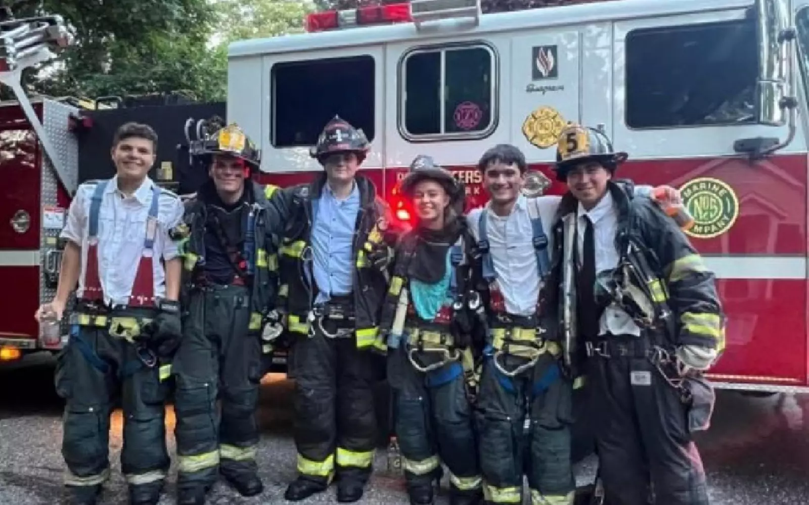 Это был первый реальный пожар, на котором оказались выпускники школы Порт-Джефферсона, в течение нескольких лет тренировавшиеся в качестве младших пожарных-добровольцев.