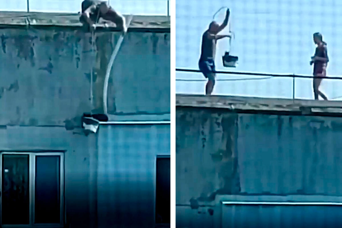 «Герои нашего времени»: мужчина при помощи ведра и шланга спас кота