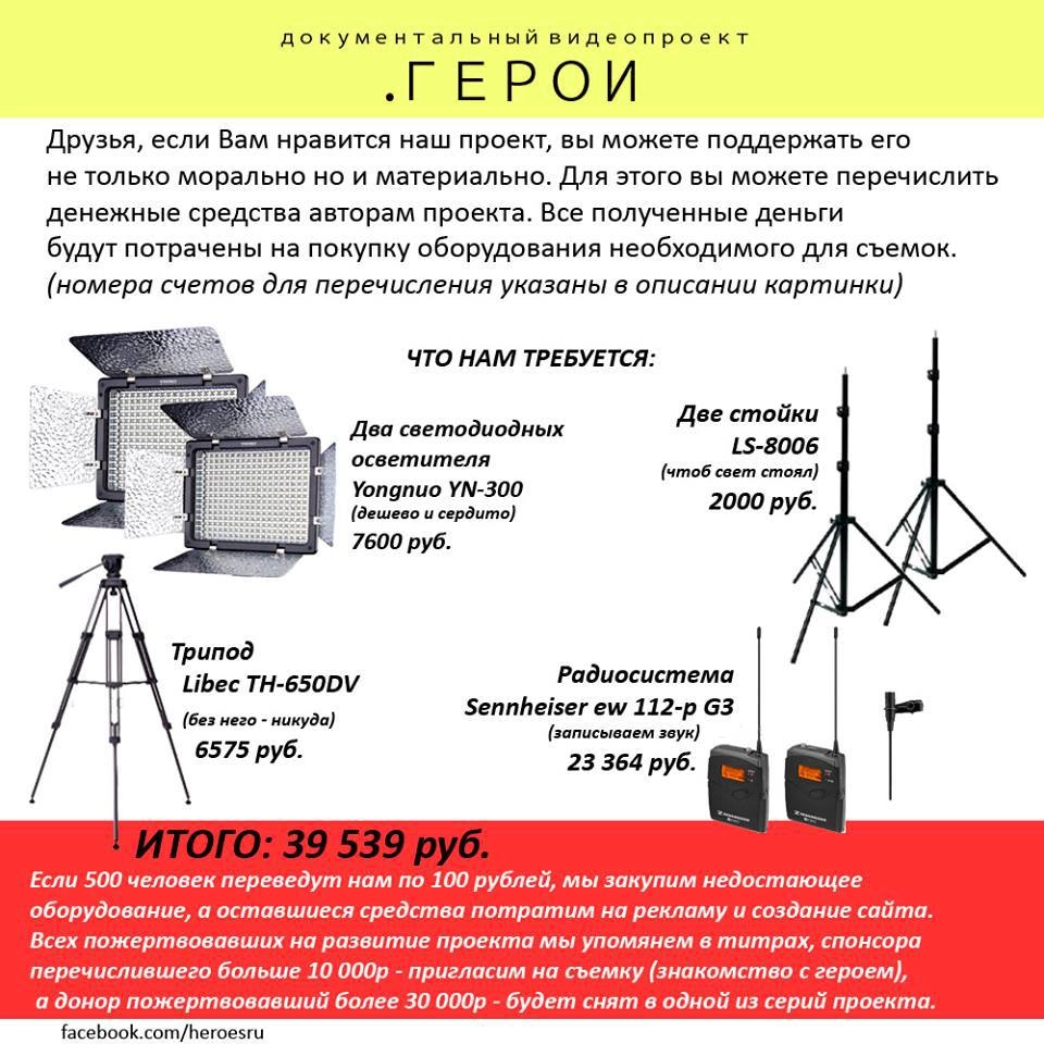 Отдельной строкой хотелось бы поблагодарить информационного партнера программы «.ГЕРОИ» — сайт Ridus.ru. И выразить признательность всем тем, кто в то или иное время помогал в съемках проекта: Титовой Юлии, Очеретину Алексею, Ефимову Владимиру, Замеховской Надежде, Гулютину Андрею, Павлу из города Горловка, корреспондентам из Славянска, Соломиной Марии и другим.