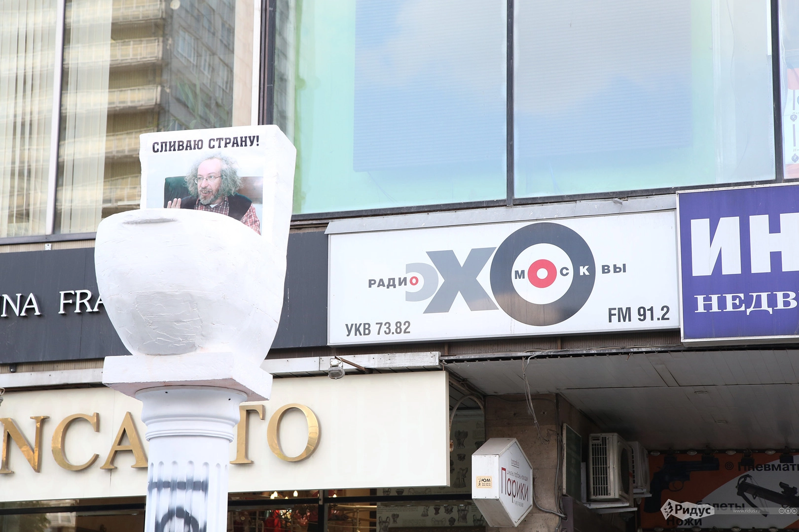 Гигантский унитаз на колонне появился у офиса радиостанции «Эхо Москвы»