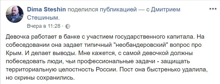 Глава банка «Точка» заступился за подчиненную, мучившую соискателей Крымом