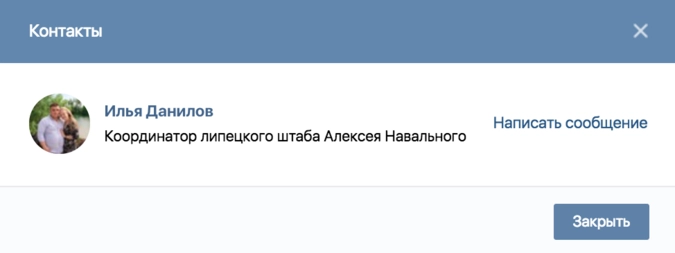 Активист Иван Данилов является координатором штаба Навального в Липецке. Это следует из информации тематического сообщества «Вконтакте»: