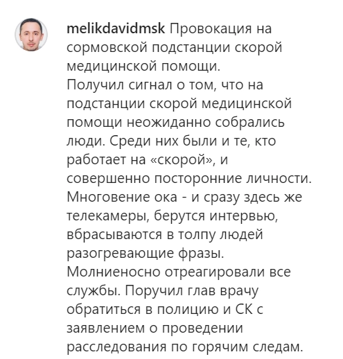 Министр здравоохранения Нижнего Новгорода Давид Мелик-Гусейнов назвал протест врачей, не получивших обещанных президентом надбавок за работу с зараженными коронавирсной инфекцией нового типа, «отрежессированной заказухой» и «провокацией».