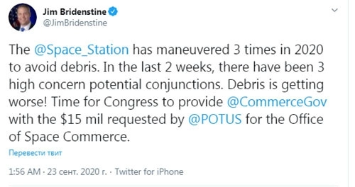 Брайденстайн напомнил, что накануне Международной космической станции (МКС) пришлось совершать маневр из-за возможного столкновения с опасными обломками. По словам главы NASA, «за последние две недели возникли три потенциально схожие ситуации, вызвавшие серьезные опасения».