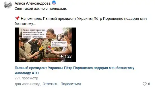 А бывший президент Украины Пётр Порошенко вручил в качестве подарка мяч потерявшему ноги в Донбассе солдату.