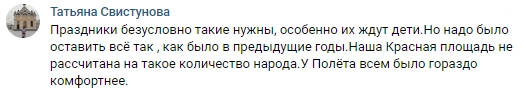 У горожан есть серьезные претензии и к организации действа с Дедами Морозами. Улицы и площади старого центра Рыбинска, выбранные для шествия в этом году, оказались слишком тесными для него. В результате, скажем, многие дети так и не смогли посмотреть предназначенное для них праздничное шоу.