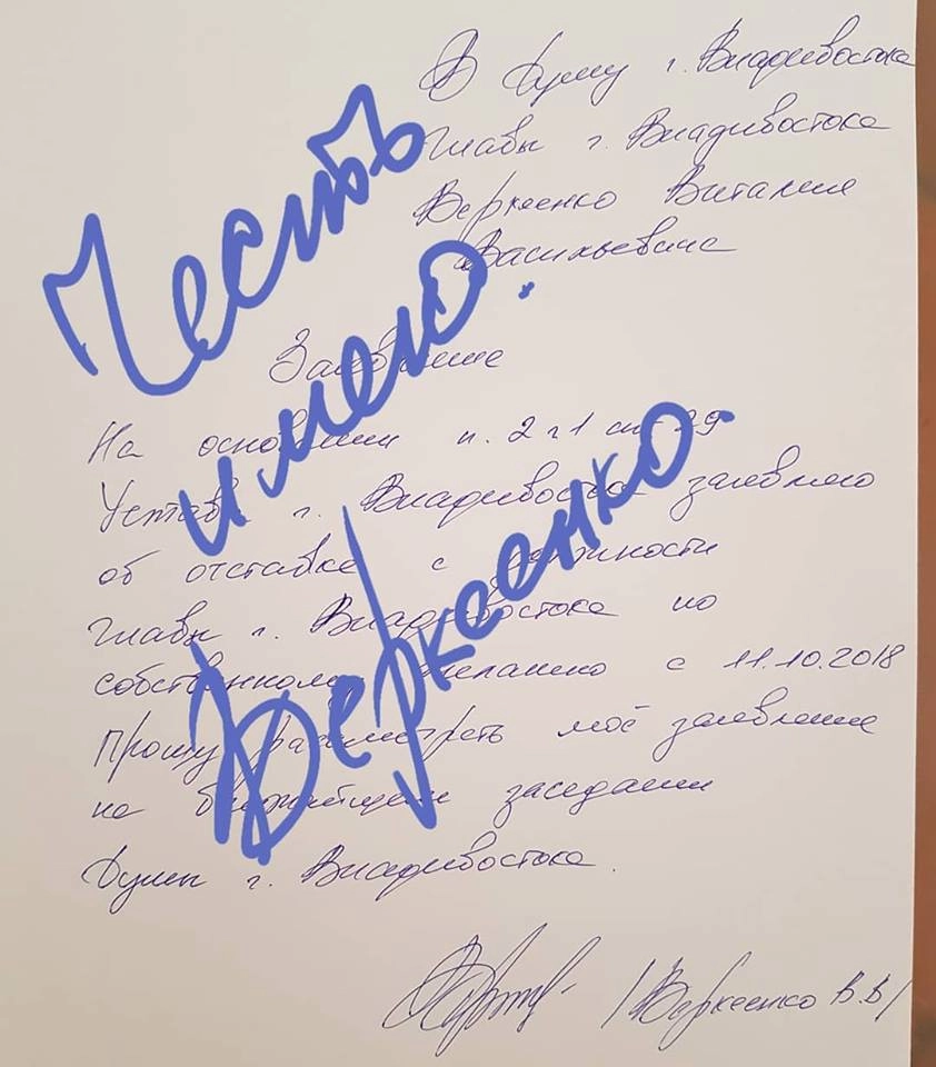 Передал в Думу города Владивостока заявление. До 10 октября завершаем подготовку к отопительному сезону и в целом города к зиме. С 11 октября ухожу с должности главы города по собственному желанию. Есть силы бороться за благополучие города, но уже нет мотивации, — написал Веркеенко в Facebook.