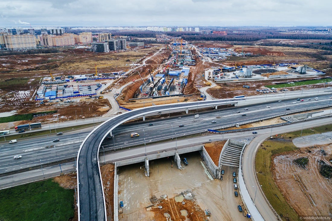 5. Тот же тоннельный разворот, вид в сторону области. Дальше видно эстакаду на пересечении Калужского шоссе с будущей трассой «Солнцево — Бутово — Видное». Справа клонированный муравейник — жилой комплекс «Дубровка».