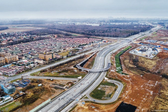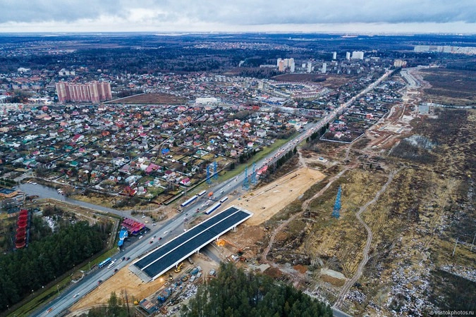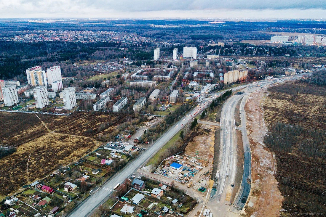 10. Вид в область. Эстакада Воскресенского шоссе на пересечении с дублером Калужского шоссе. Эта дорога соединит поселки Воскресенское и Московский. Сейчас на картах эти дороги называются Проектируемыми проездам 7031 и 7032.
