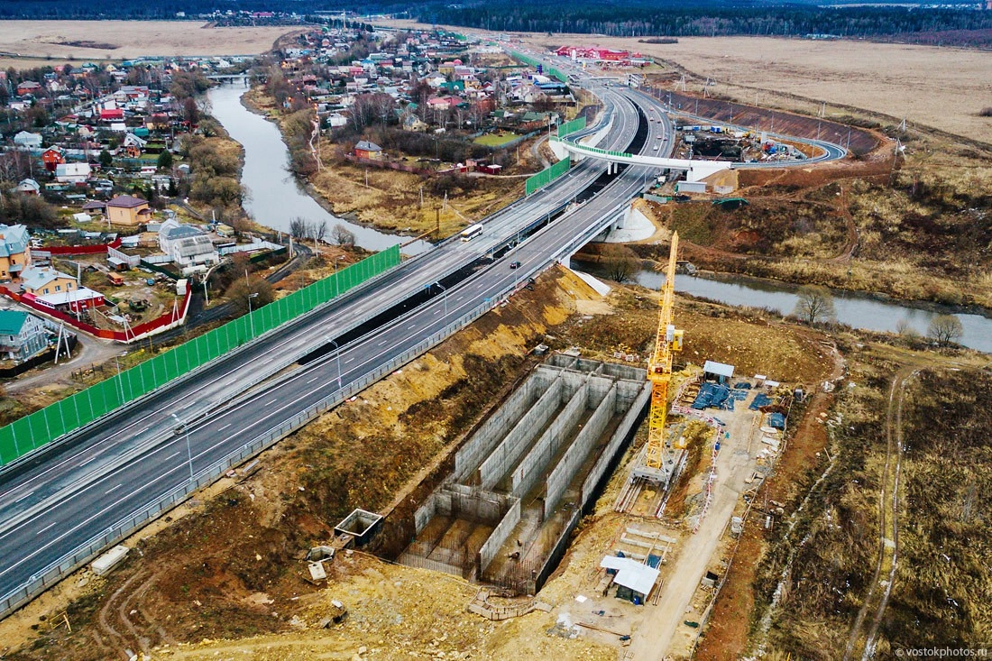15. Разворотная эстакада перед Десной. По обоим берегам реки строятся очистные сооружения для очистки поверхностных сточных вод. Всего от МКАД до Бетонки будет построено четыре очистных сооружения.