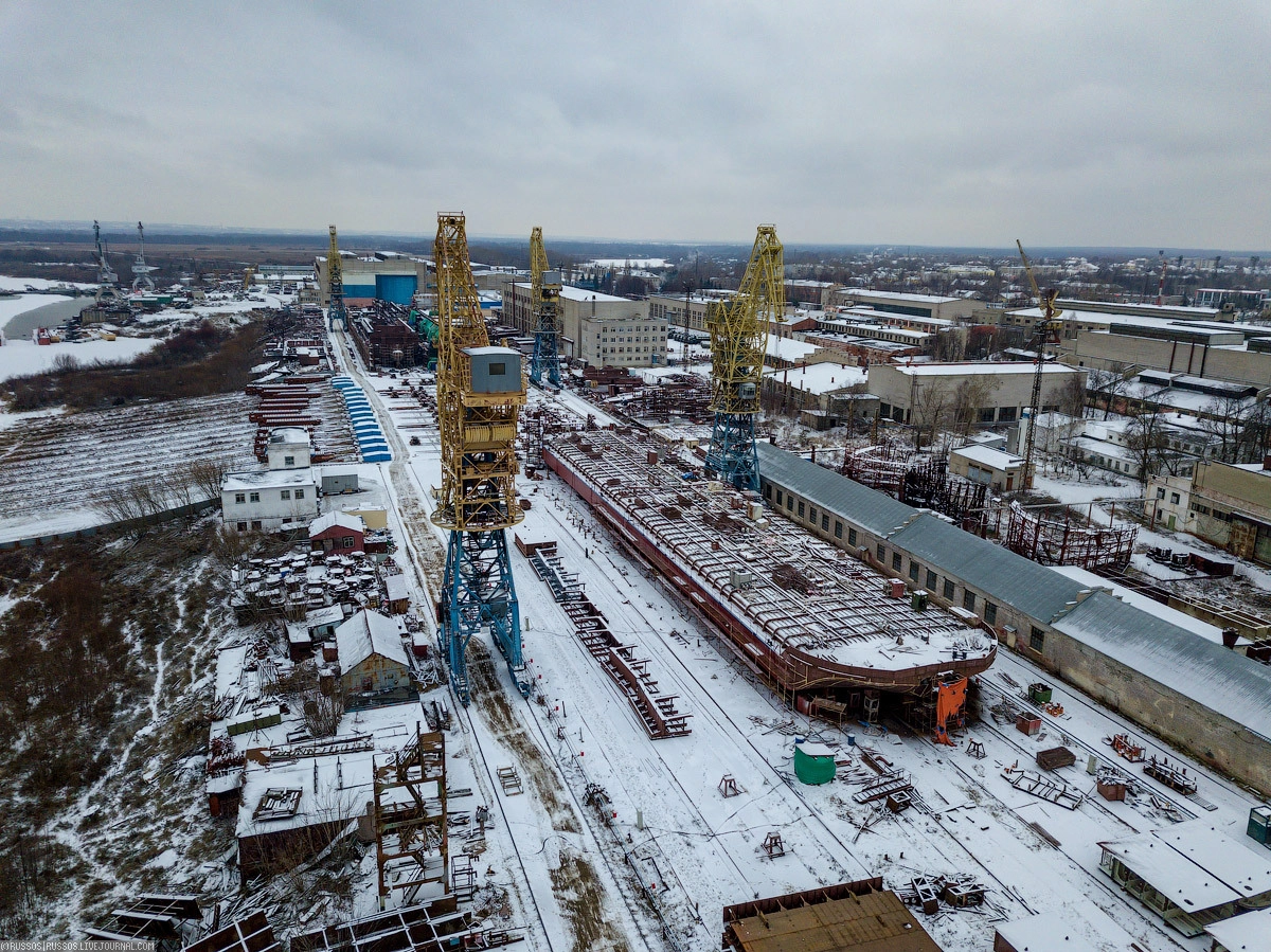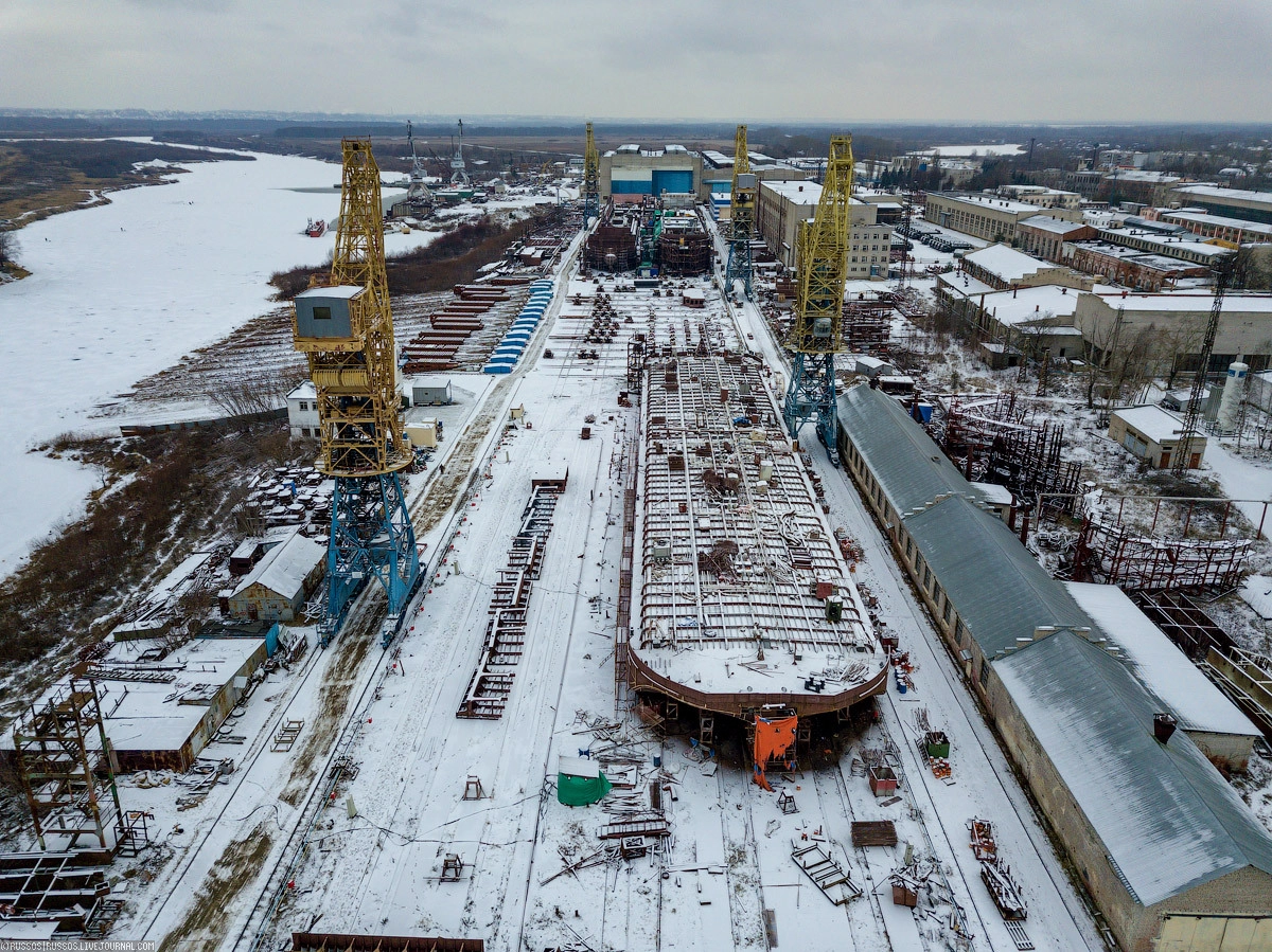 Съемка была сделана в ноябре прошлого года, когда на стапели находились в сборке два сухогруза проекта RSD32M для ООО «Навис-1».