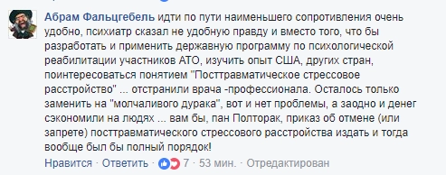 Некоторые комментирующие подтвердили слова психиатра о проблемах со здоровьем у воинов «АТО».