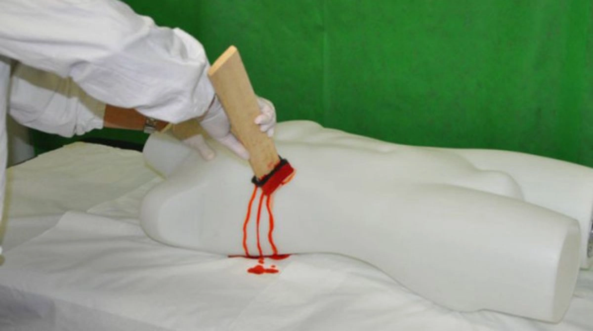 Чтобы это доказать, исследователи использовали манекен, настоящую человеческая кровь и ее искусственный заменитель, имеющий очень похожие свойства. Во время эксперимента ученые разлили кровь на манекене в местах ран Иисуса: на тыльной стороне левой руки и возле раны груди.