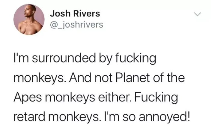 Кроме того, редактор написал множество уничижительных твитов о полных, пожилых или «уродливых» людях, а также бездомных. «Толстяки меня заводят», «Люди в Soho (торгово-развлекательный центр в Лондоне. — Прим. „Ридуса“) удивительны. Нигде не увидишь так много самоуверенных уродов», — «отрывался» Риверс.