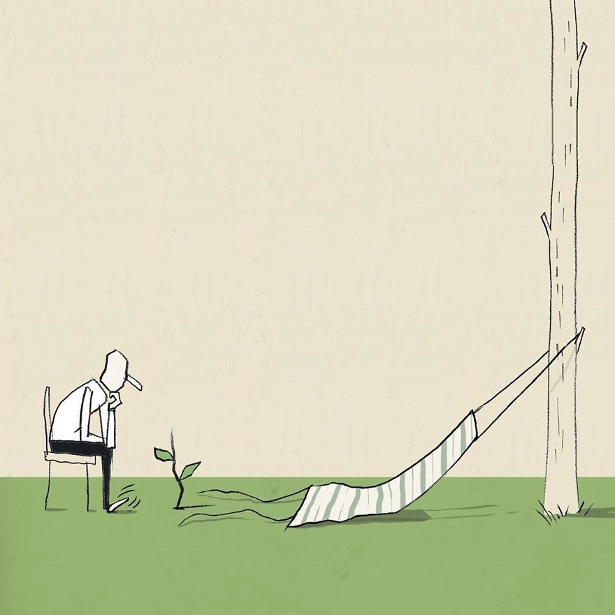 Израильский иллюстратор Юваль Робичек создает простые в рисовке, но очень глубокие по смыслу рисунки. Мужчина старается переносить жизненные ситуации на бумагу с помощью метафор. Часть его работ заставляет задуматься о важных вещах, другие просто вызывают улыбку своей абсурдностью! Но равнодушными вас не оставит ни одна иллюстрация!