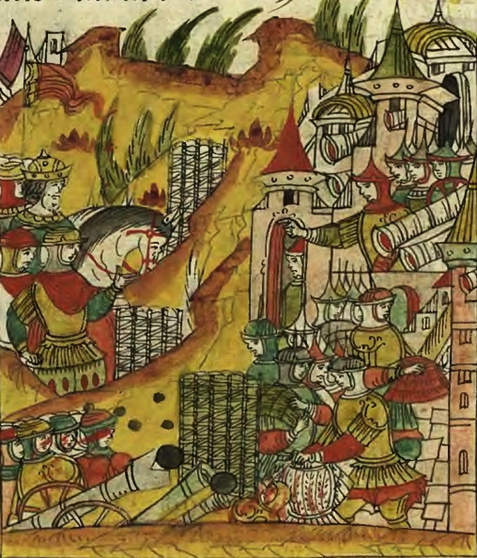 «вылазили на него дети боярские конные из города и стрельцы, убили у маистра из пищалей и дети боярские, человек со сто, а стрельцов государевых убили тритцать с человеком да двух сотников стрелецких».