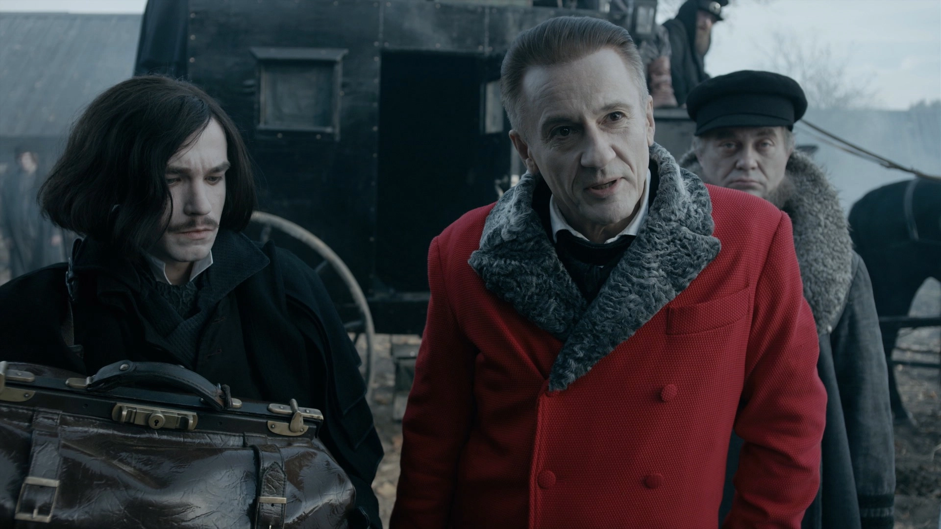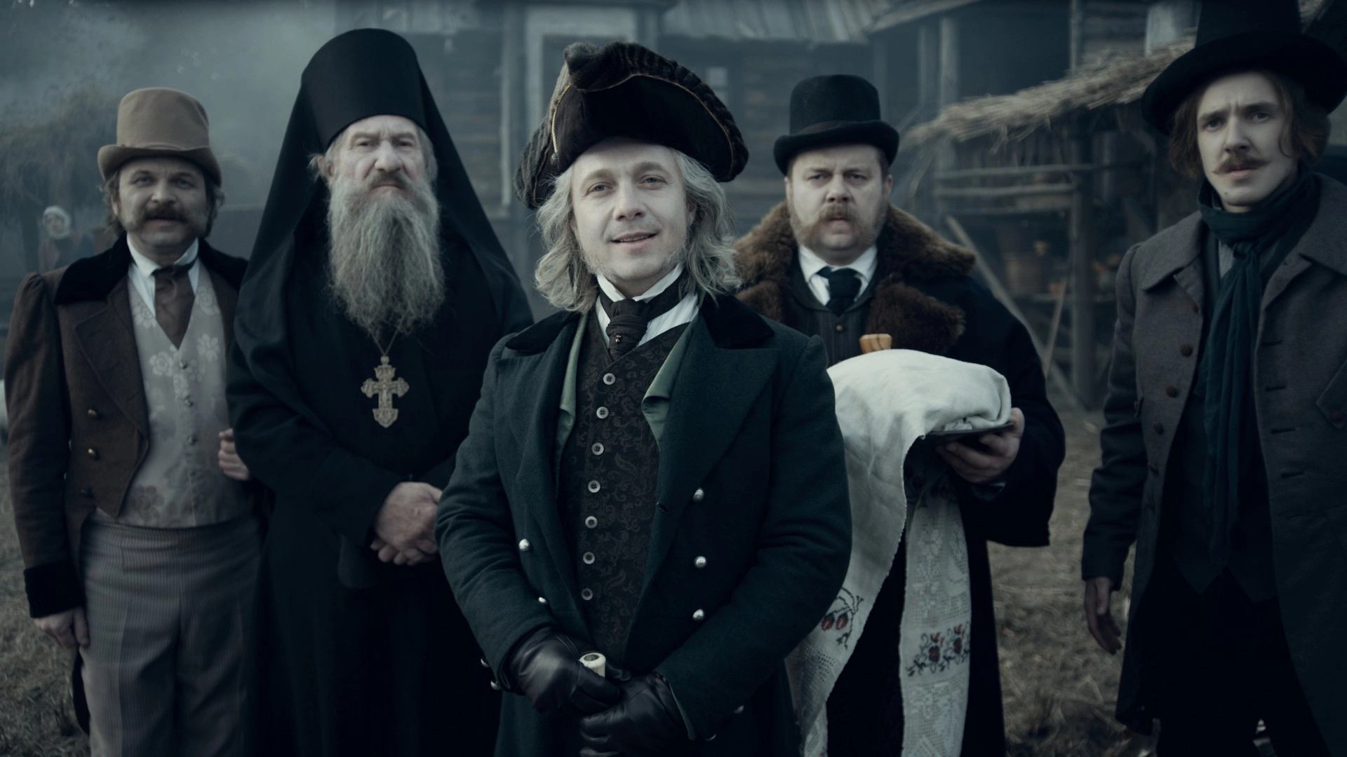 Так и здесь: герой Олега Меньшикова, например, сразу упоминает про своего приятеля по фамилии Яичница, а затем рассказывает про коллежского регистратора, у которого шинель украли (правда, он за это людей потрошить стал). Один из персонажей ухмыляется, что местные помещики числом душ меряются, а самый страшный кошмар для Гоголя, по его признанию, оказывается про встречу с Пушкиным, а вовсе не тот, где он обнаруживает себя запертым в гробу. При этом романтический интерес начинающего литератора просит его больше не жечь своих книг — Николай Васильевич обещает.