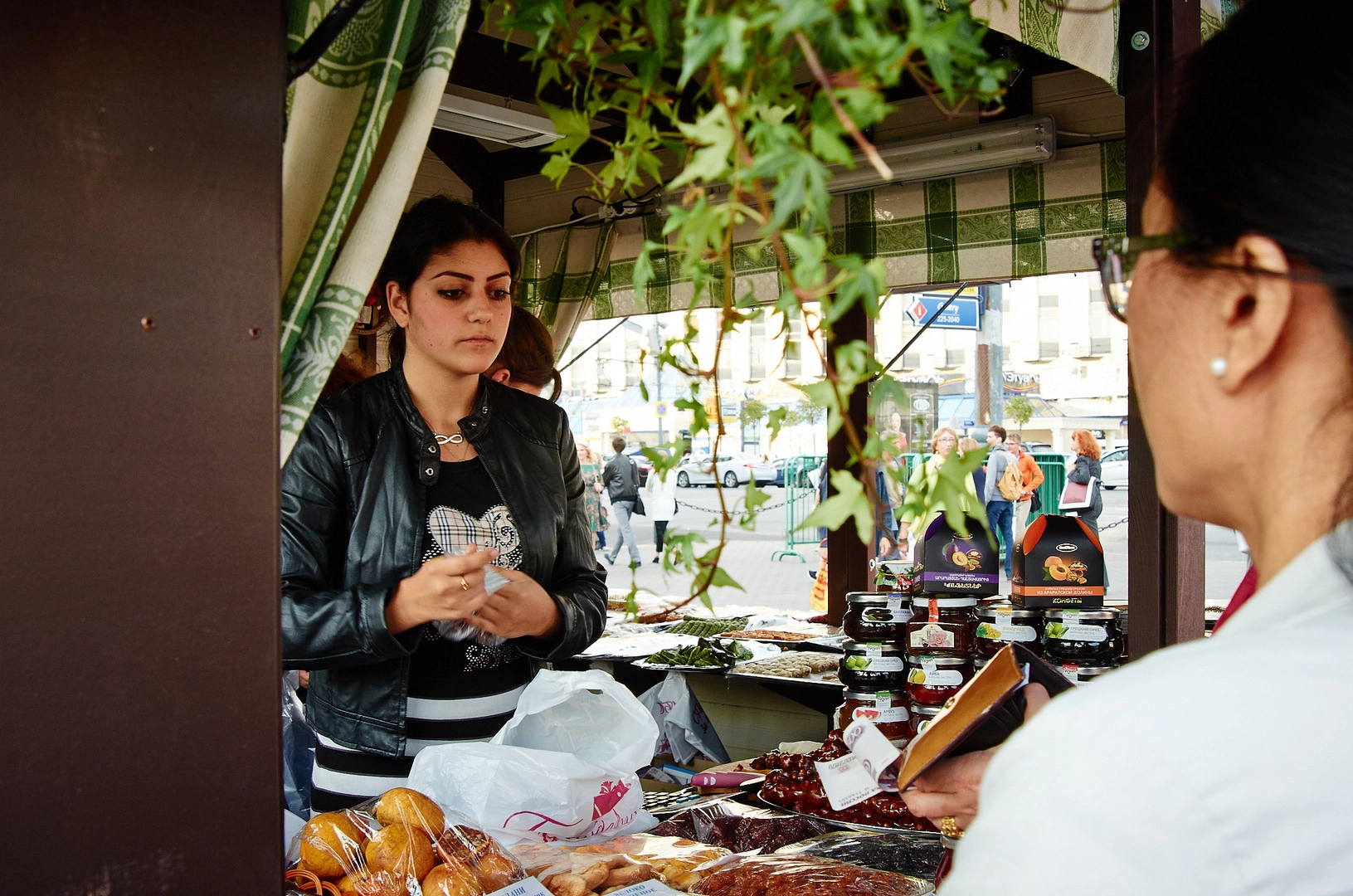 Тут же на площадке торговали и торгуют продуктами из этой закавказской страны. Сладкие персики, абрикосы и другие фрукты из Армении не залеживаются на прилавках. Есть и выпечка, и пастила, и сухофрукты, и всевозможные сладости на основе инжира, груш и яблок. Для мясоедов на прилавках красуется бастурма, суджук, ишли-кюфта и другие деликатесы, о которых многие люди в Москве слышат впервые.