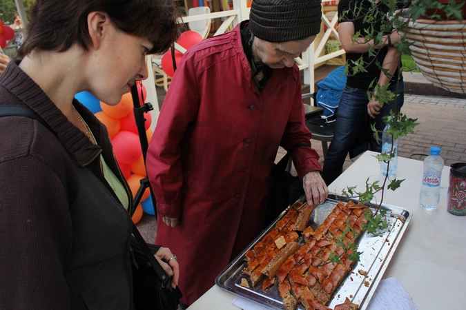 Но никто его не слушал. Бабульки уносили цельными кусками восточную сладость, приговаривая «Ну, там... Эээ... Чтобы на всех. Я не для себя... Я на всех... Не мне это», и торопливыми движениями запихивали пахлаву в сумки. Другие предпочитали подходить и брать тактично по одному кусочку, отворачиваться, быстро засовывать в рот и с набитым ртом поворачиваться обратно за следующим.