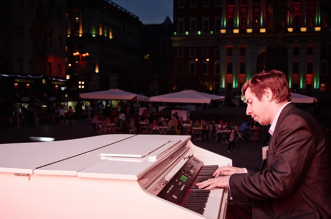 И вправду, одно удовольствие гулять сытым под звуки фортепиано и детского смеха теплым осенним вечерком.