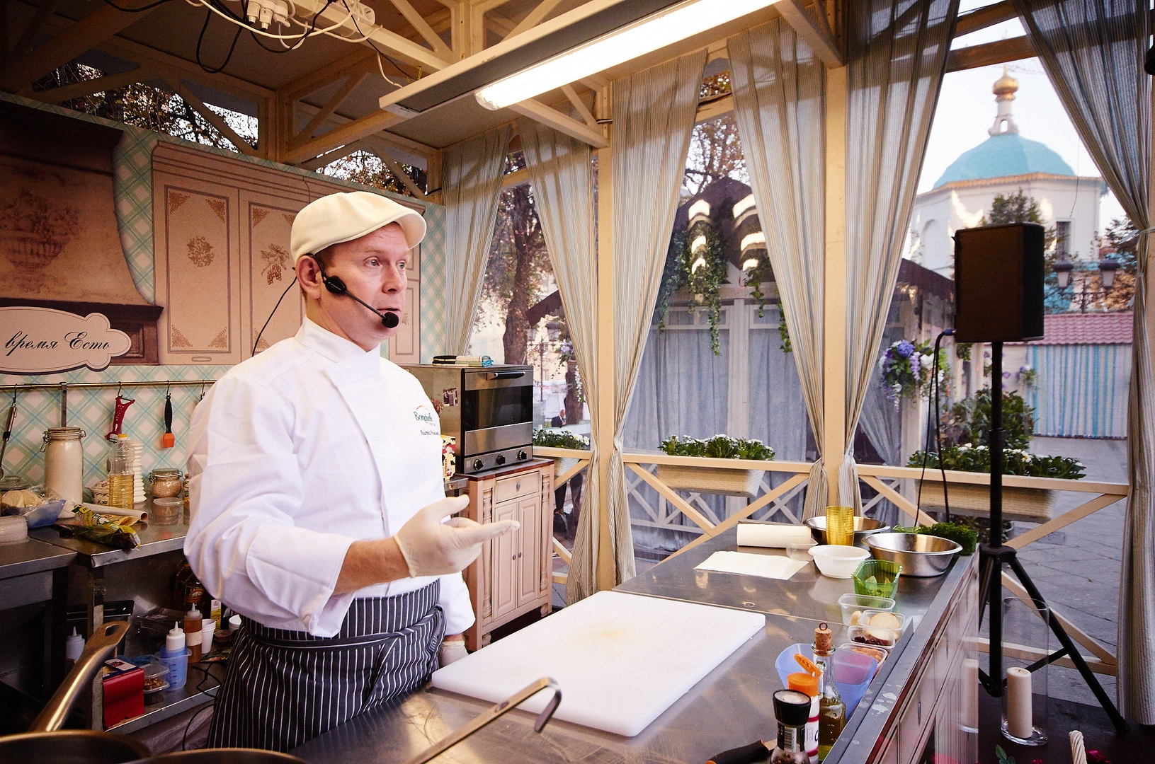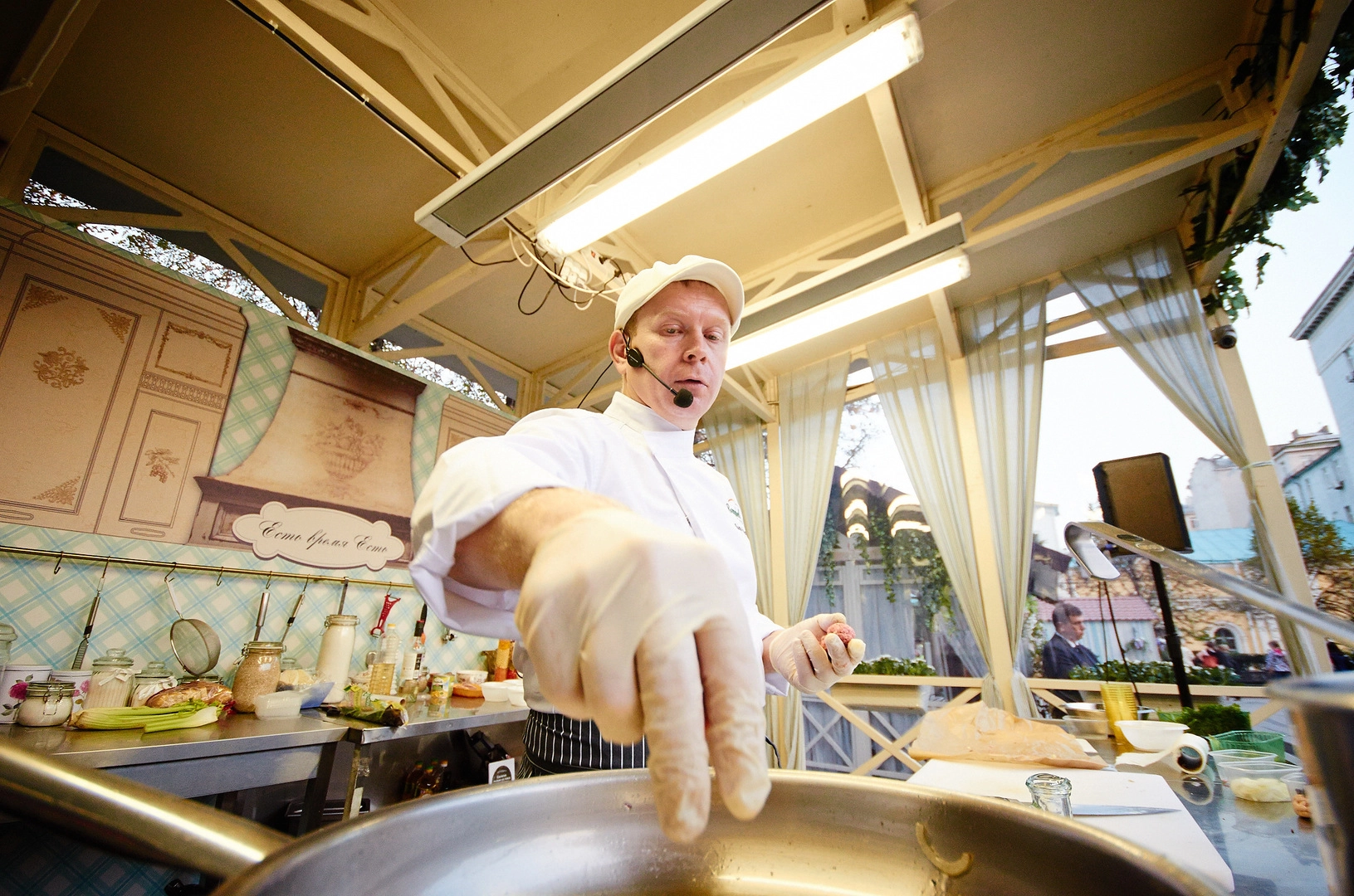 В этот день за сценой проходил мастер-класс от шеф-повара Андрея Рыдзевского (Bonduelle). Андрей начал общение с нами, поварятами, со слов «Мы сегодня будем готовить два блюда. Первое — суп с фрикадельками и двумя видами фасоли. А на второе у нас будет цыпленок в крем-соусе с кукурузным гарниром. Ну как, звучит аппетитно?». Да, весьма аппетитно! Особенно, когда весь день ничего не ел.