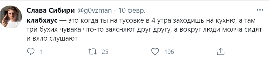 В этом материале мы собрали самые забавные твиты о развивающемся взрывными темпами Clubhouse, начиная от высмеивания общения голосовыми и заканчивая желанием туда попасть.